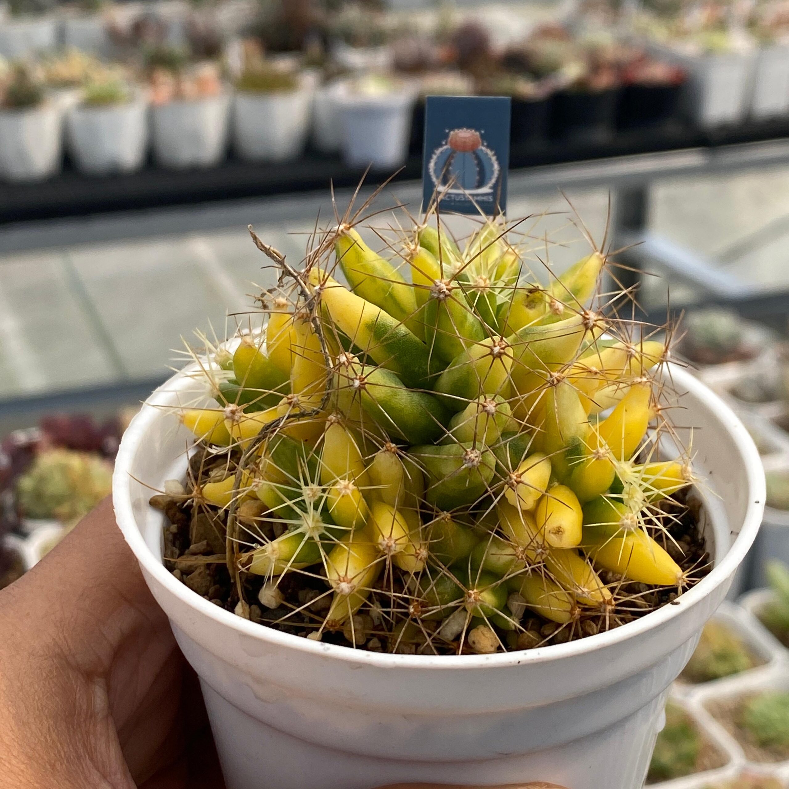 Dolichothele longimamma f. variegata, juga dikenal sebagai Mammillaria longimamma f. variegata, adalah bentuk variasi dari kaktus Mammillaria longimamma yang dihargai karena warna batangnya yang bergaris-garis kuning pucat dan hijau. Tanaman ini adalah kultivar yang berasal dari budidaya, bukan spesies alami, dan sangat dicari oleh kolektor sukulen.