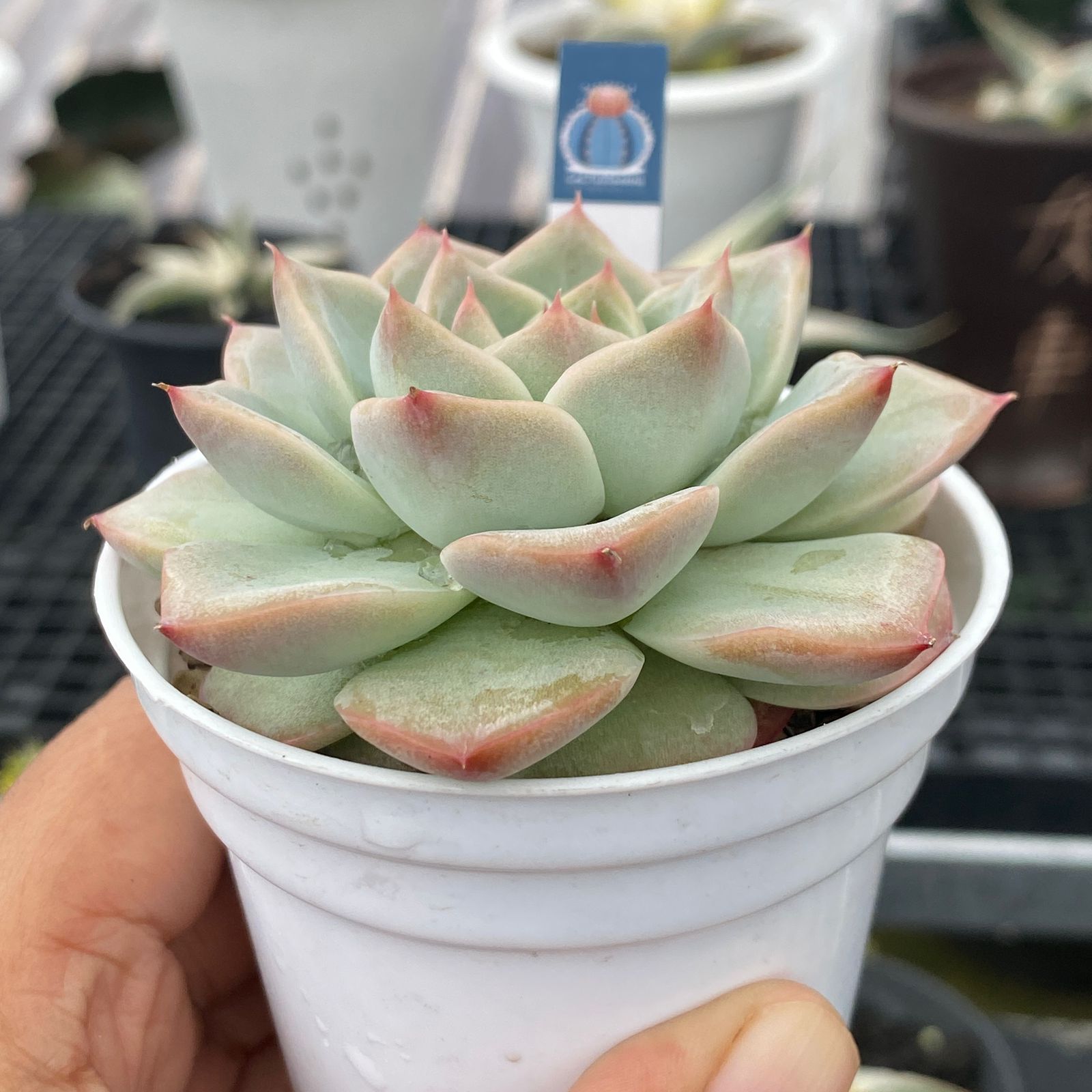 Echeveria ‘Rose Love’ tumbuh dalam formasi roset padat yang menyerupai bunga mawar. Daunnya yang berdaging dan sukulen menyimpan air, memberinya kemampuan untuk bertahan dalam kondisi kering.