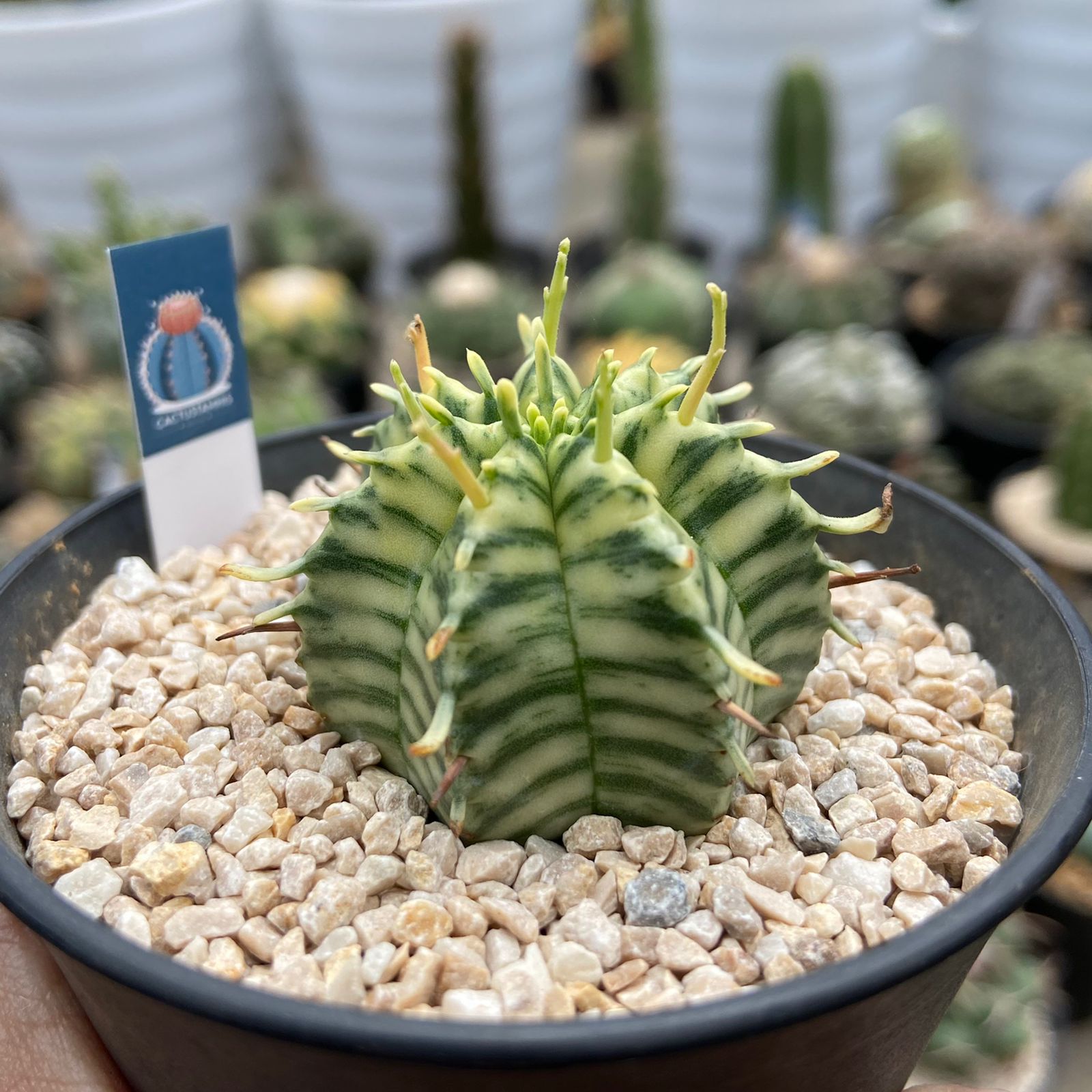Euphorbia meloformis, yaitu tanaman sukulen kecil berbentuk seperti melon atau bola dari keluarga Euphorbiaceae, asli Afrika Selatan, dikenal karena bentuknya yang unik, menghasilkan getah putih berbahaya saat terluka, dan populer di kalangan kolektor tanaman sukulen. Tanaman ini sering disebut “melon spurge” dan mendapatkan penghargaan Royal Horticultural Society karena keindahannya.