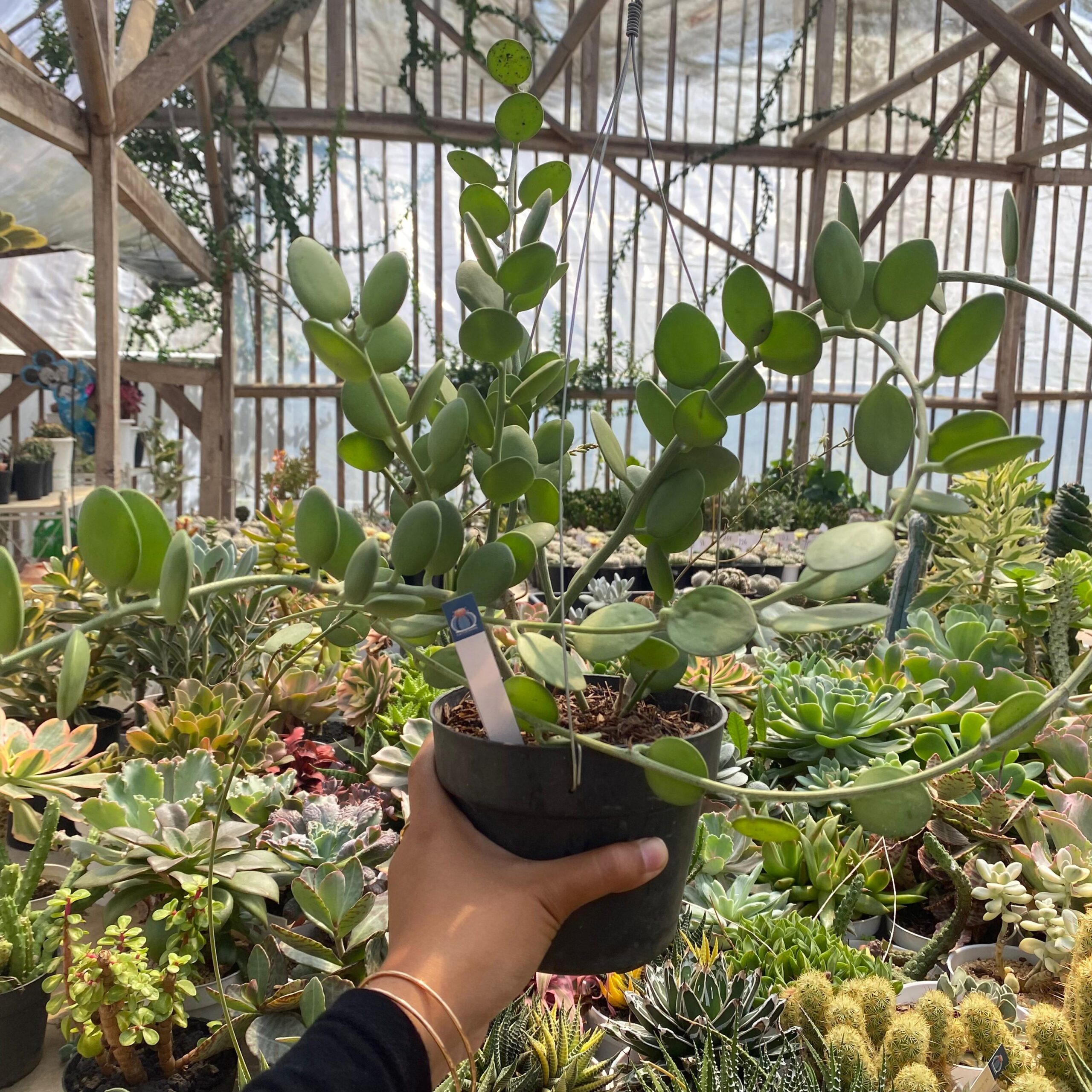 Tanaman ini memiliki daun yang tebal, berdaging, berbentuk bulat pipih, berwarna hijau keperakan hingga hijau kebiruan, yang menyerupai koin. Ciri khas inilah yang memberinya nama umum “silver dollar” atau “dolar perak”.